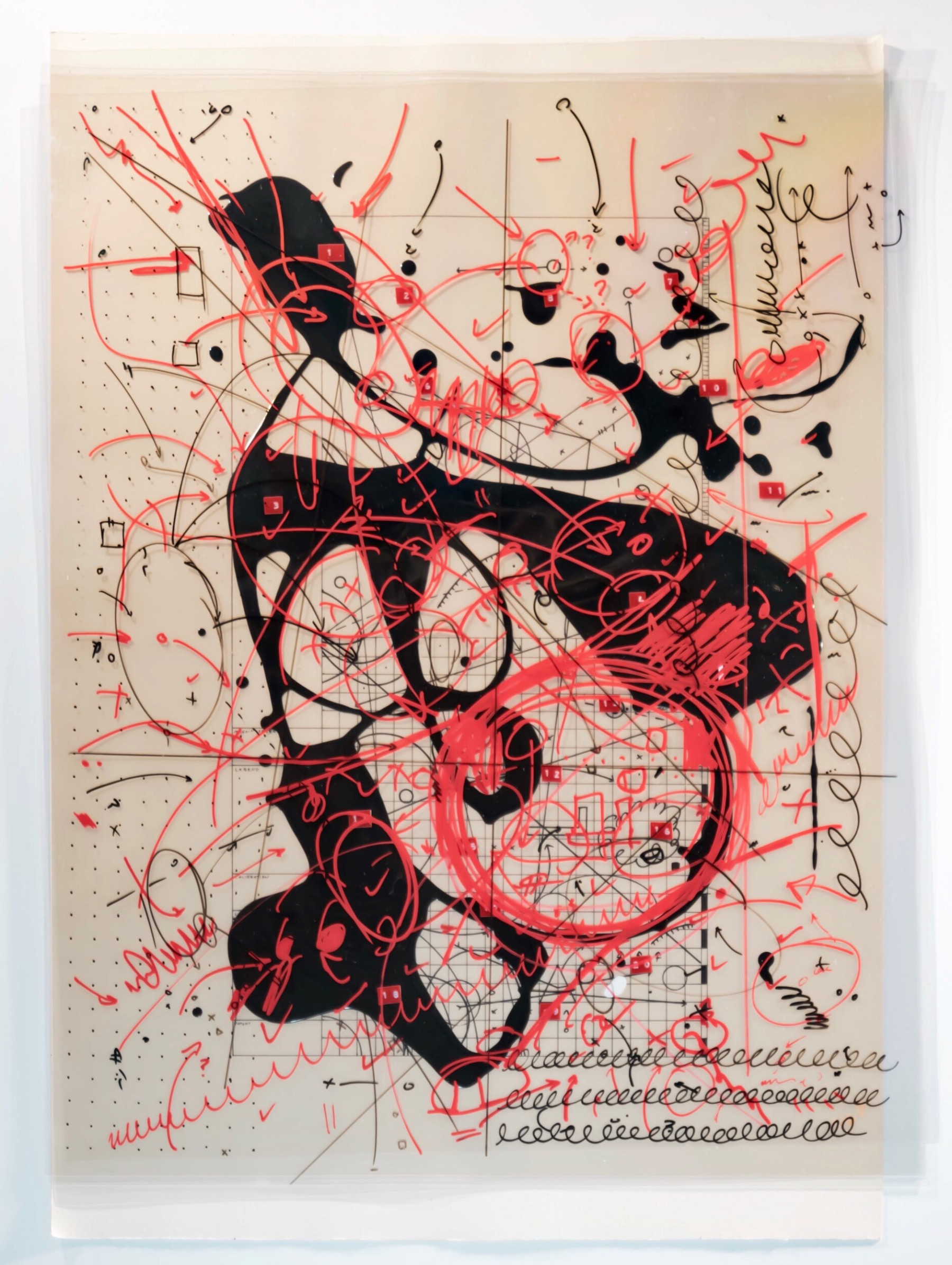 These pieces were primarily produced starting in 2000 during my time in art school and in 2018 in preparation for a group show in Seattle. These pieces allowed me to explore the intersection between abstraction and meaning. These diagrams can be characterized as abstract assemblages with recognizable reference points. I thought of them as earnest attempts at condensing rich, complex subject matter down to drips of paint through juxtaposing traditional abstract expressionist painting methods with cartography, proofreader's marks, and amateur roadside museum techniques of display, classification, and critique.