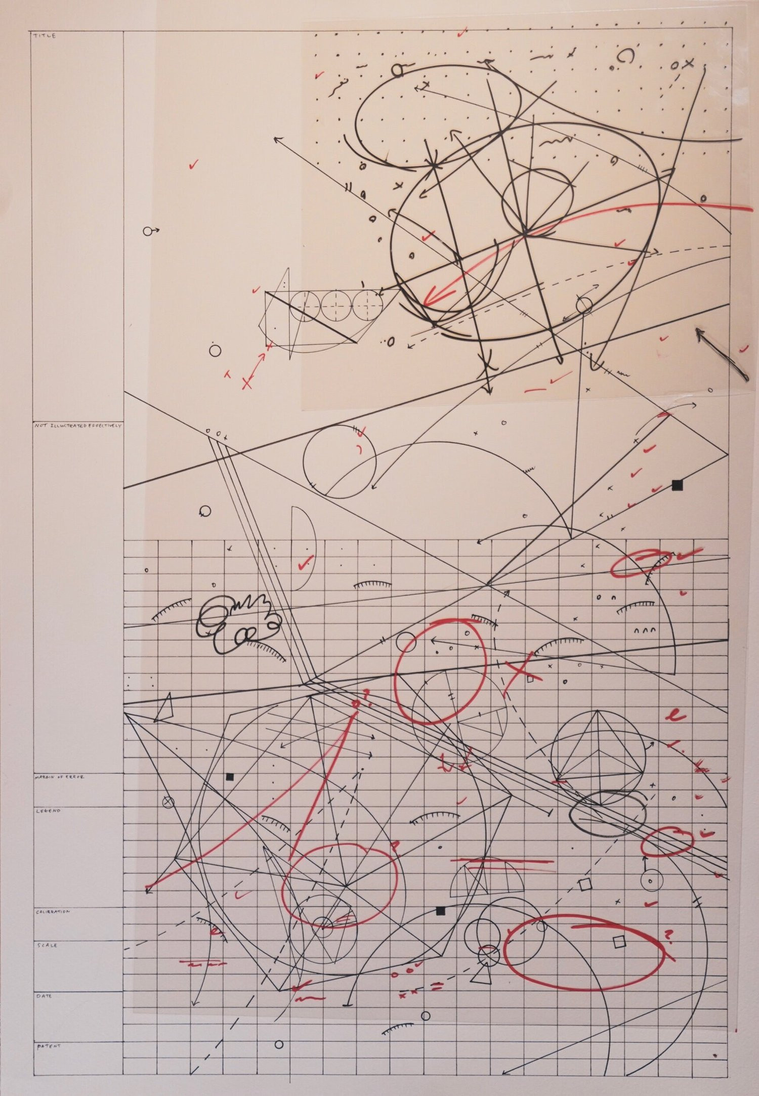 These pieces were produced between the years 2000 and 2020, though I still draw almost every day. Most of them served as layers to my series of diagrams. Some of them were part of a series of drawings sent out as holiday cards.