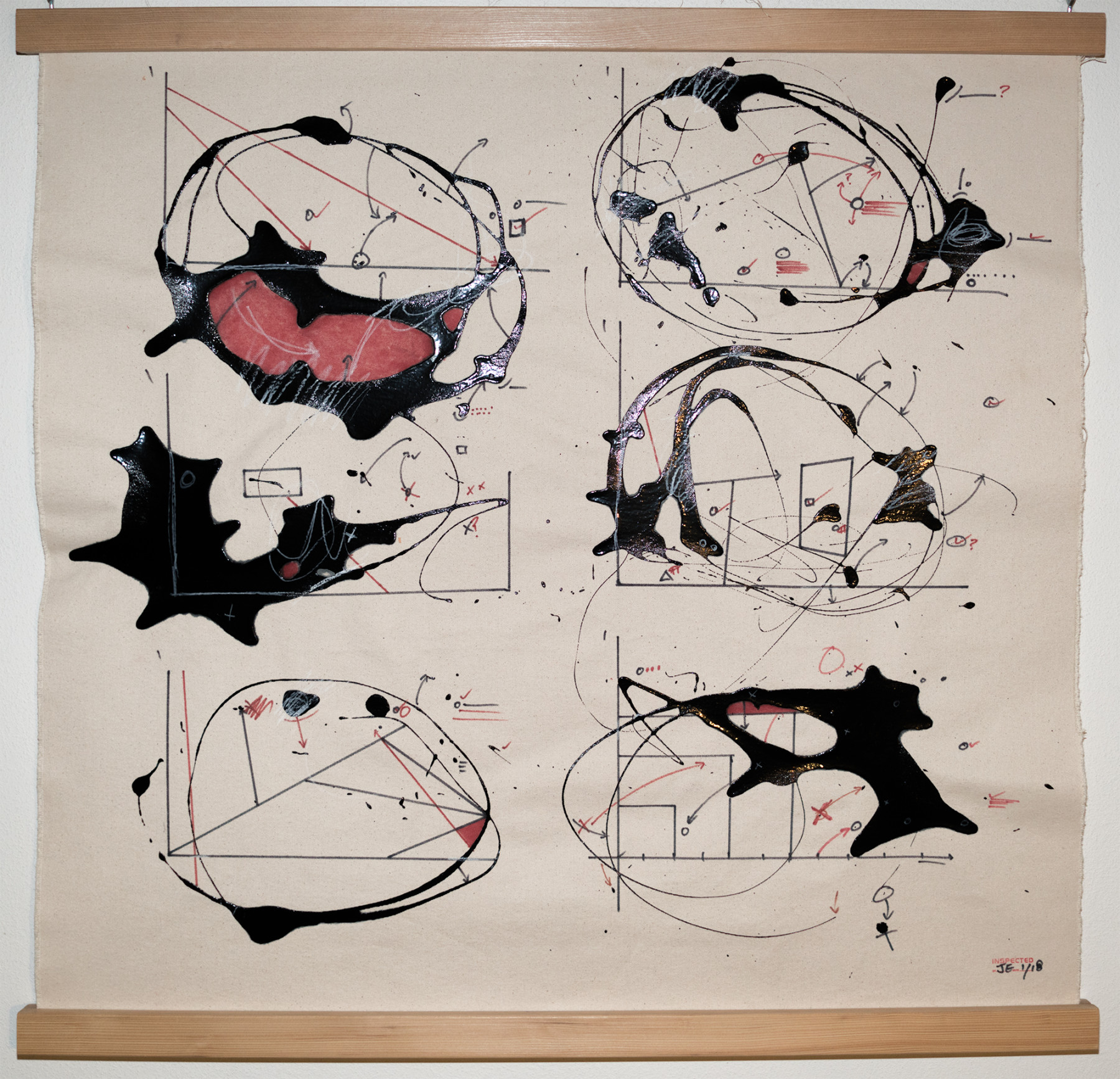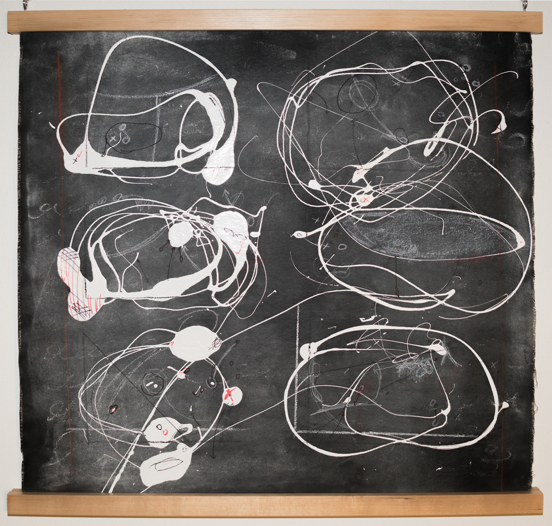 These pieces were primarily produced in 2017 and 2018. Do you remember those pulldown maps when you were in elementary school? Often fragile, ripped, and almost instantly outdated as soon as they were installed. These paintings are meant to invoke memories of those teaching aids. I create these paintings in preparation for my diagrams.