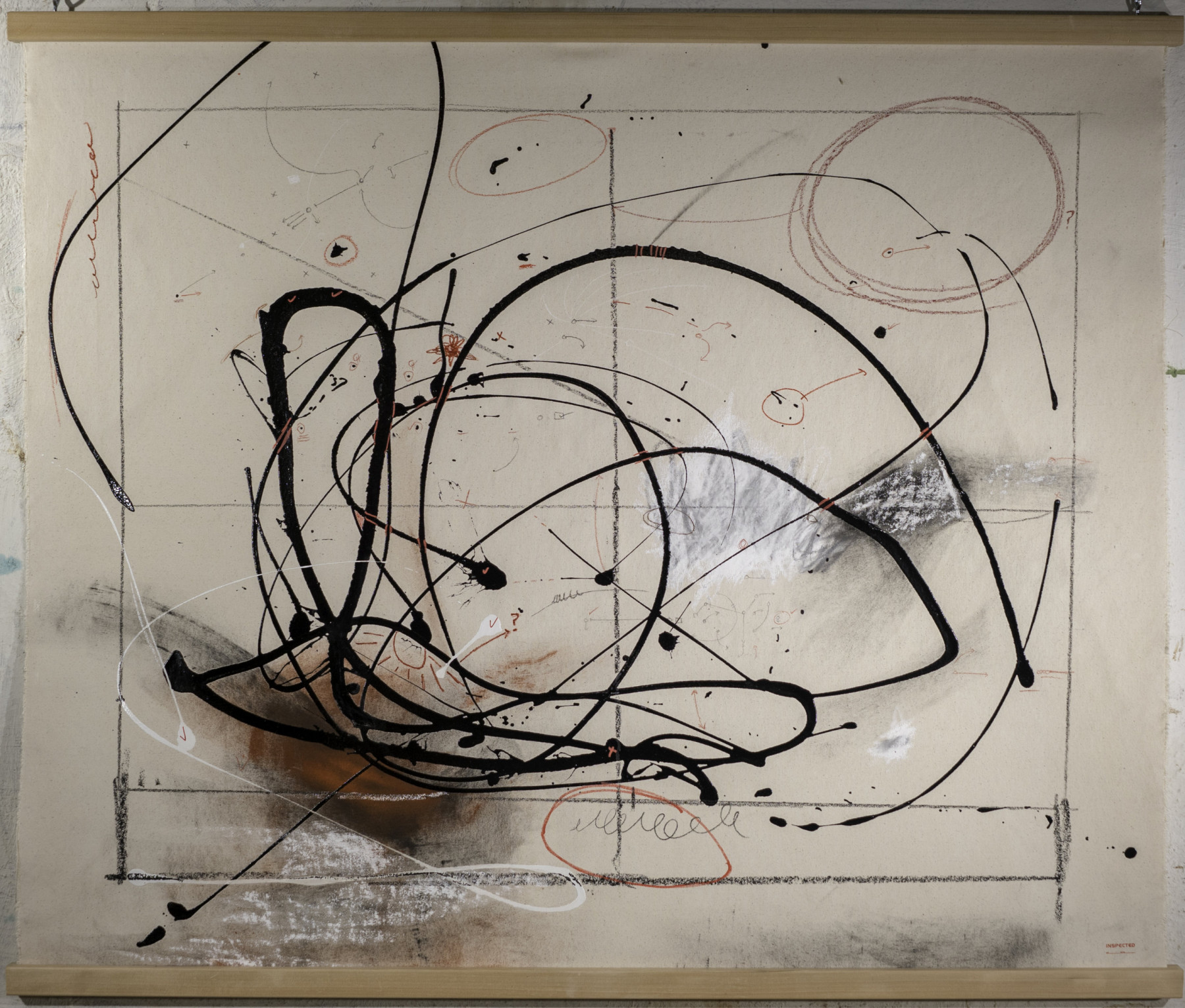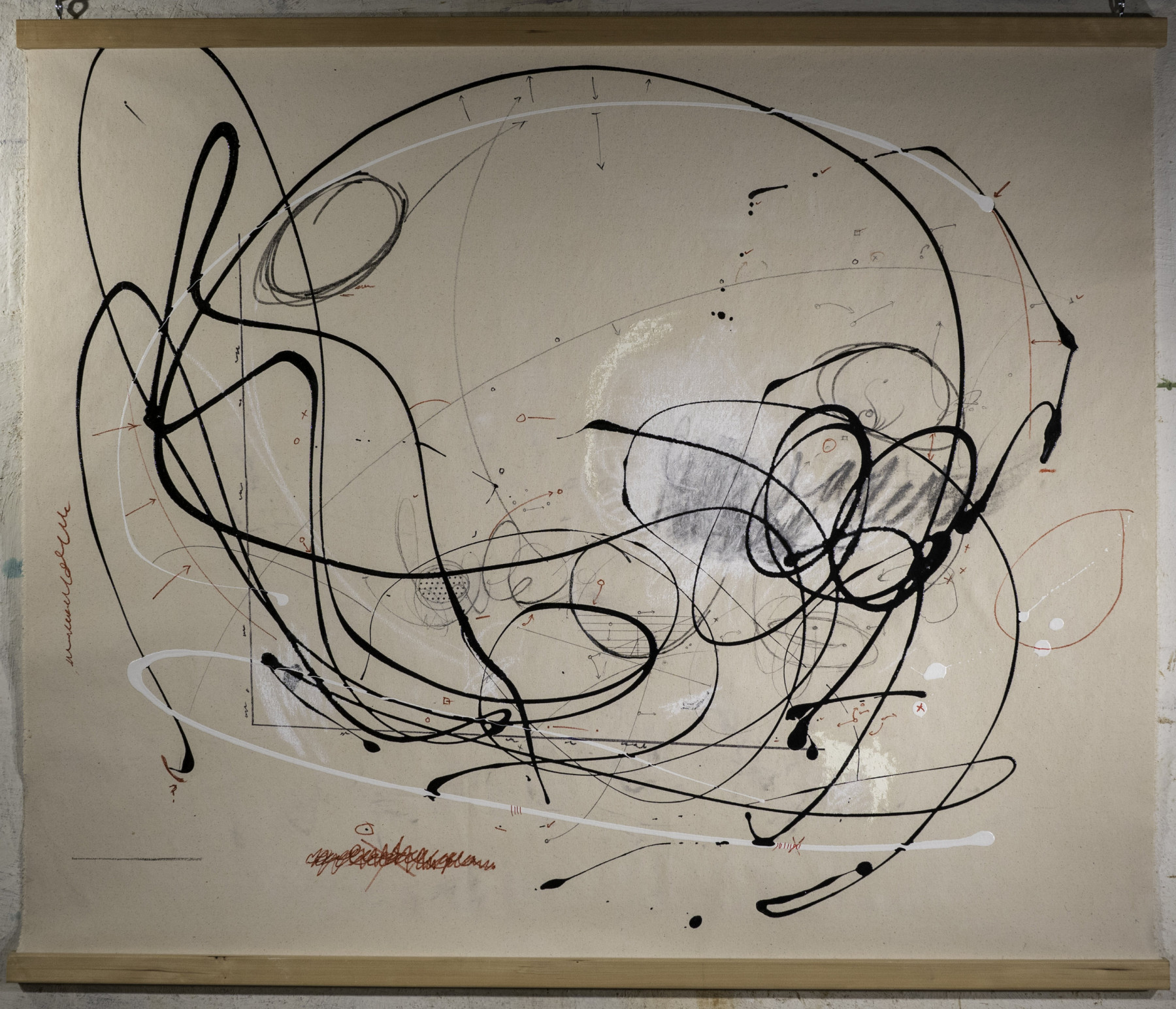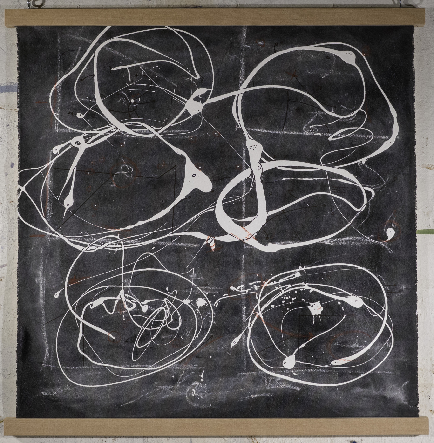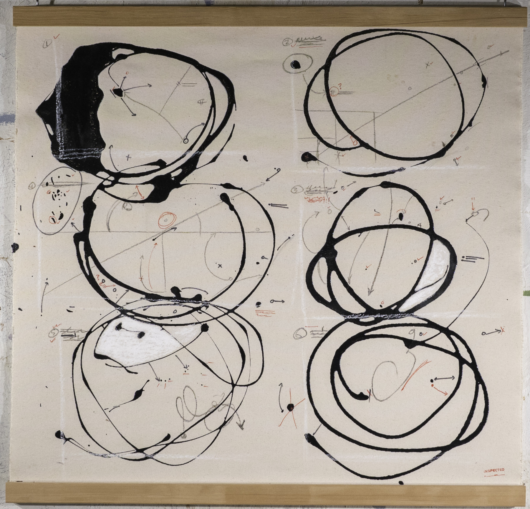 These pieces were primarily produced in 2017 and 2018. Do you remember those pulldown maps when you were in elementary school? Often fragile, ripped, and almost instantly outdated as soon as they were installed. These paintings are meant to invoke memories of those teaching aids. I create these paintings in preparation for my diagrams.