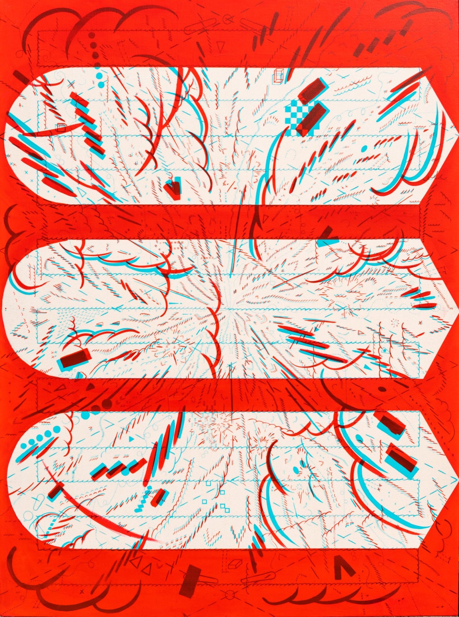 Posting some images of an unfinished painting here. I’m trying a few more things here, adding some new shapes/marks, and incorporating some new pinball iconography. Let me know what you think in the comments below.