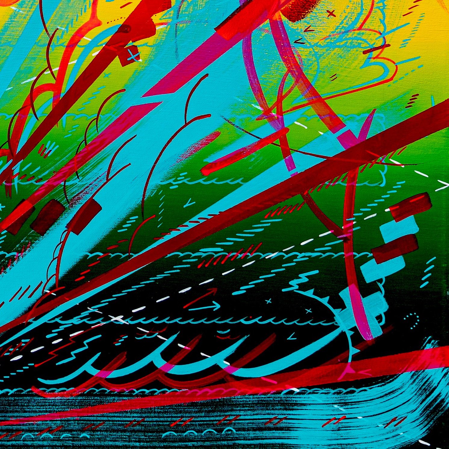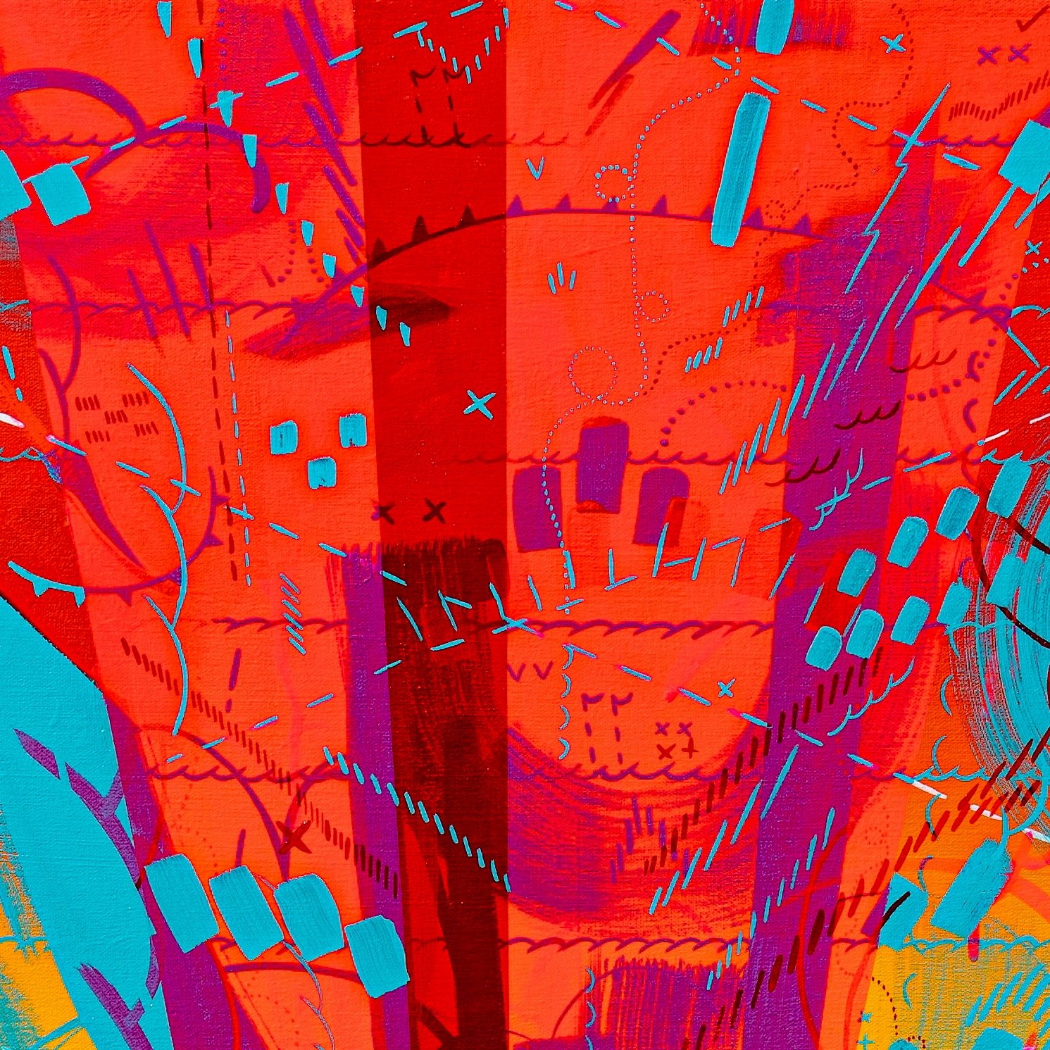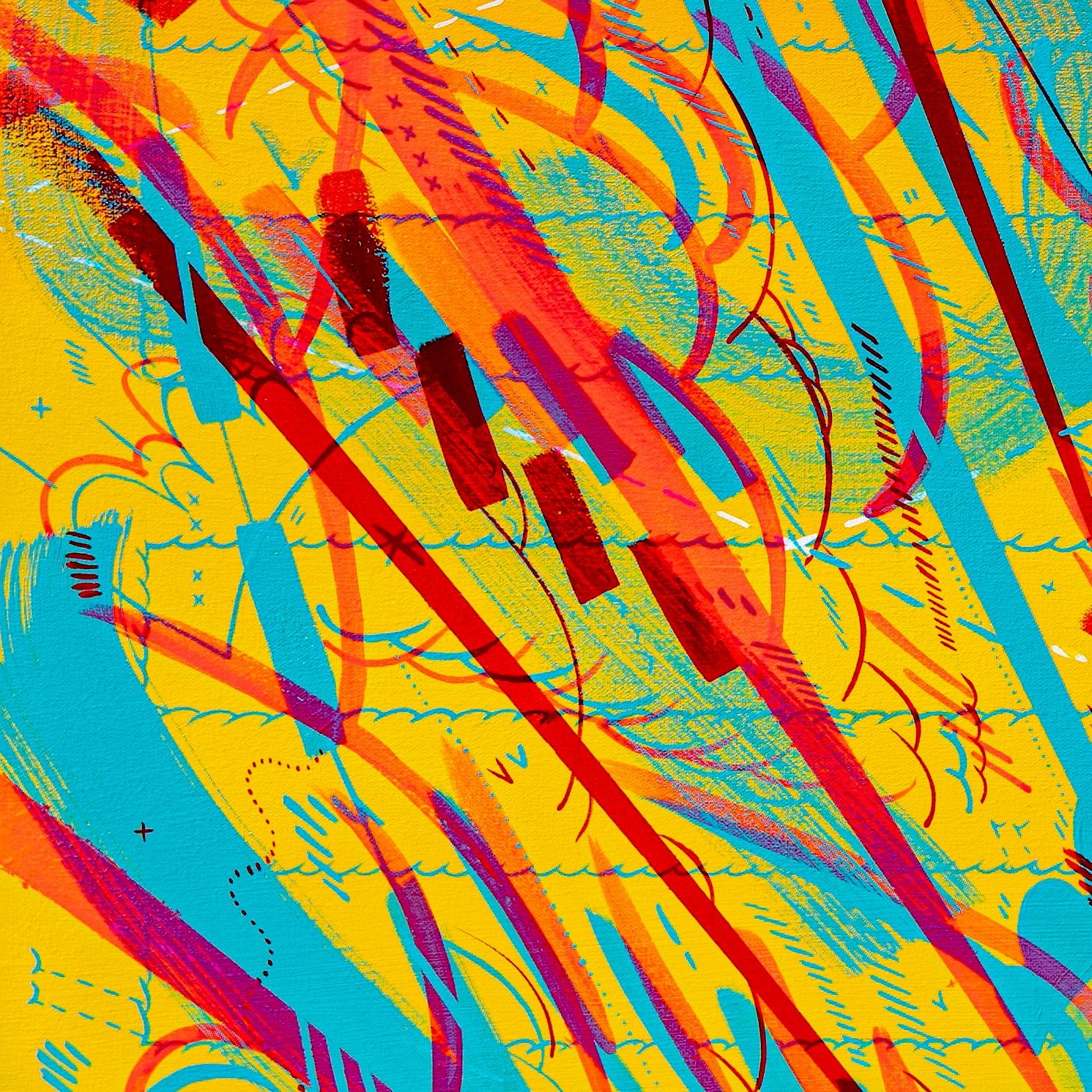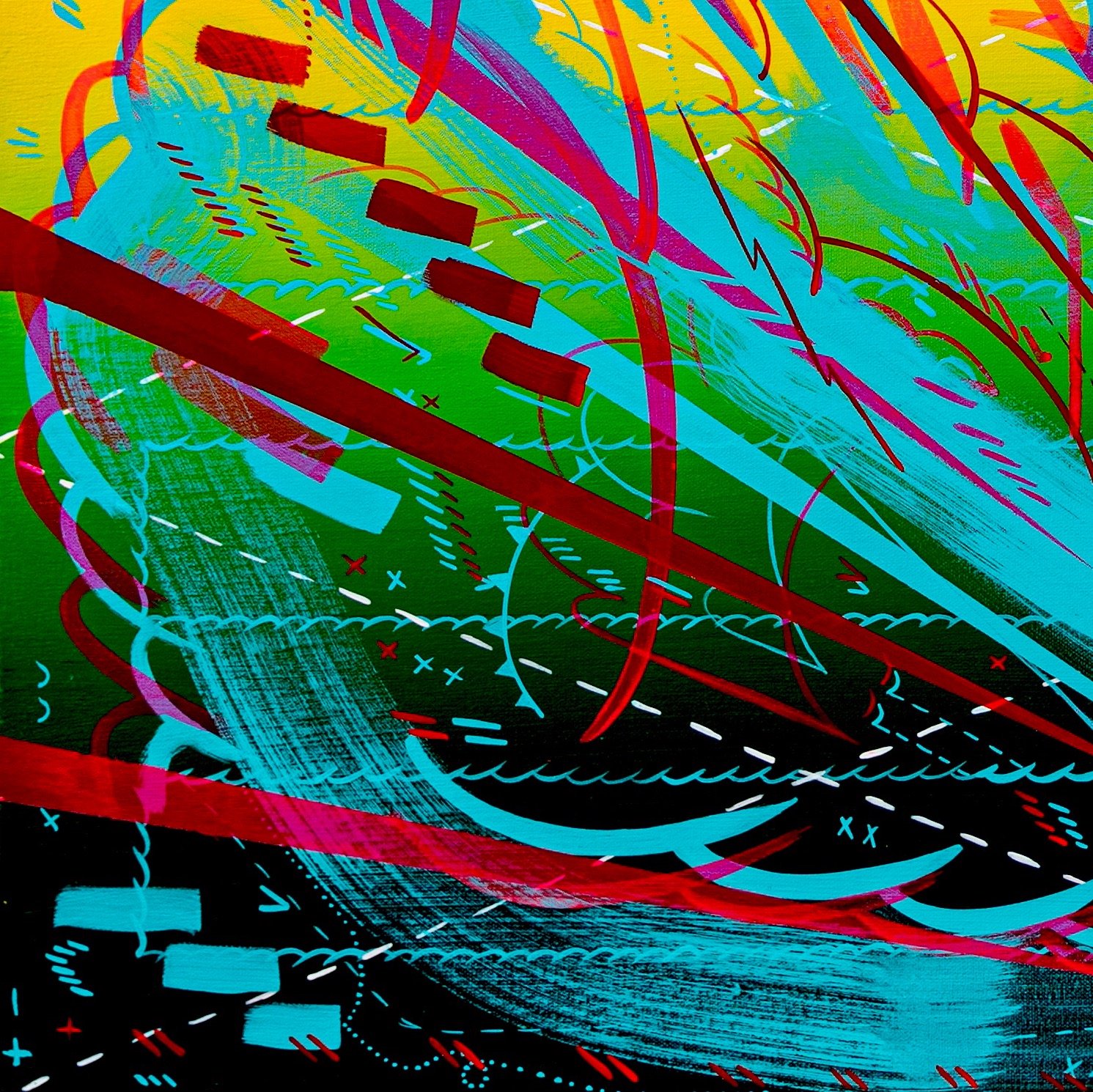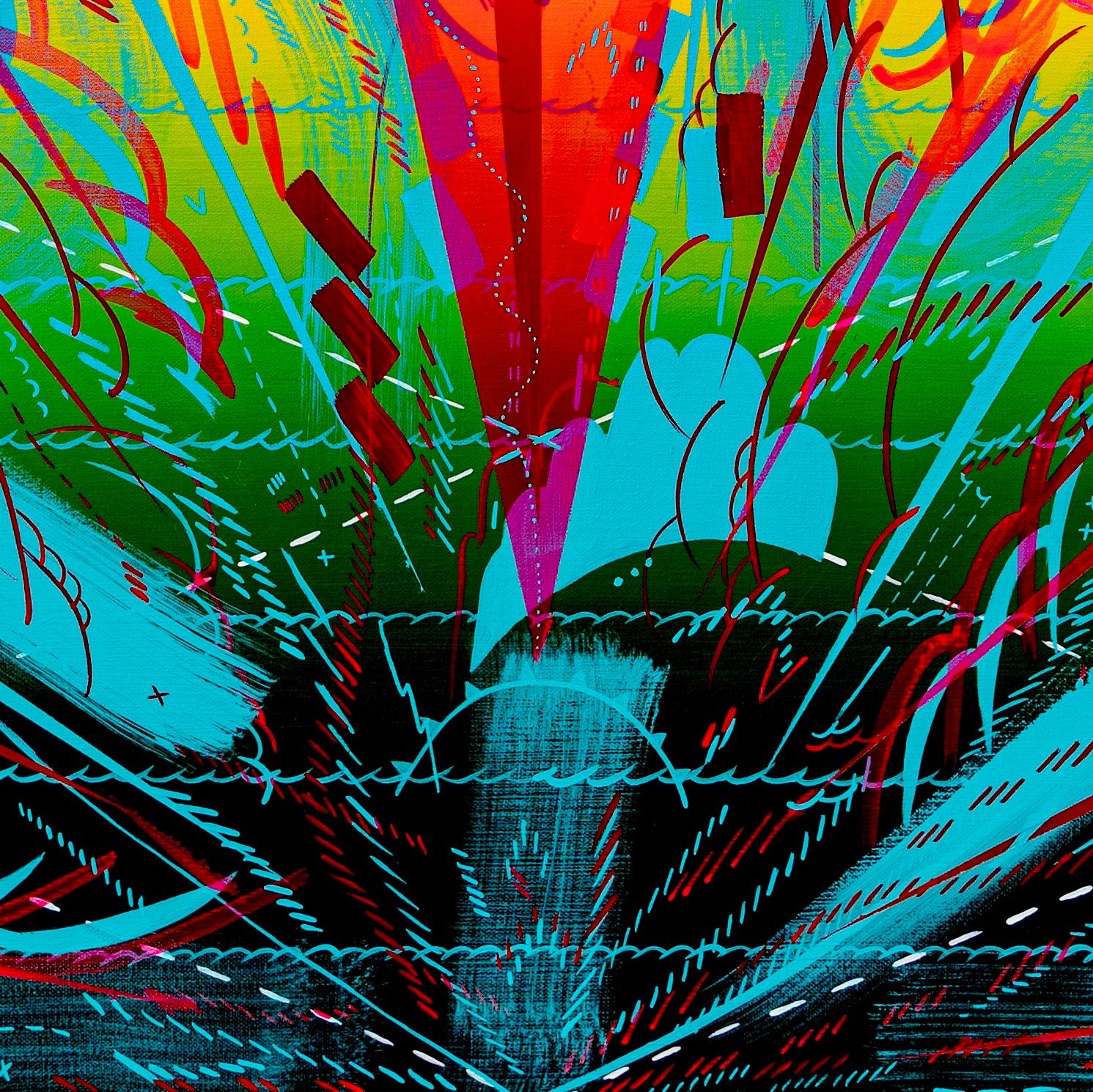 I think this one is finished. It was a rescue that I wasn’t sure I could save and it pushed me to employ new brushstrokes in order to salvage. The background gradient references old concert and boxing posters and to be honest, I didn’t initially like when I committed it to the canvas. It’s grown on me now that I have been staring at it long enough. The yellow region is probably my favorite region because the other colors really pop there. Jason Gouliard Therapeutic Rays Not Yet Assigned Letters of Any Alphabet, Though Known and Discussed: Number 32 Acrylic on canvas 40” x 40” If you are interested in purchasing the original painting, please contact me or you can purchase a print here . © Jason Gouliard 2025