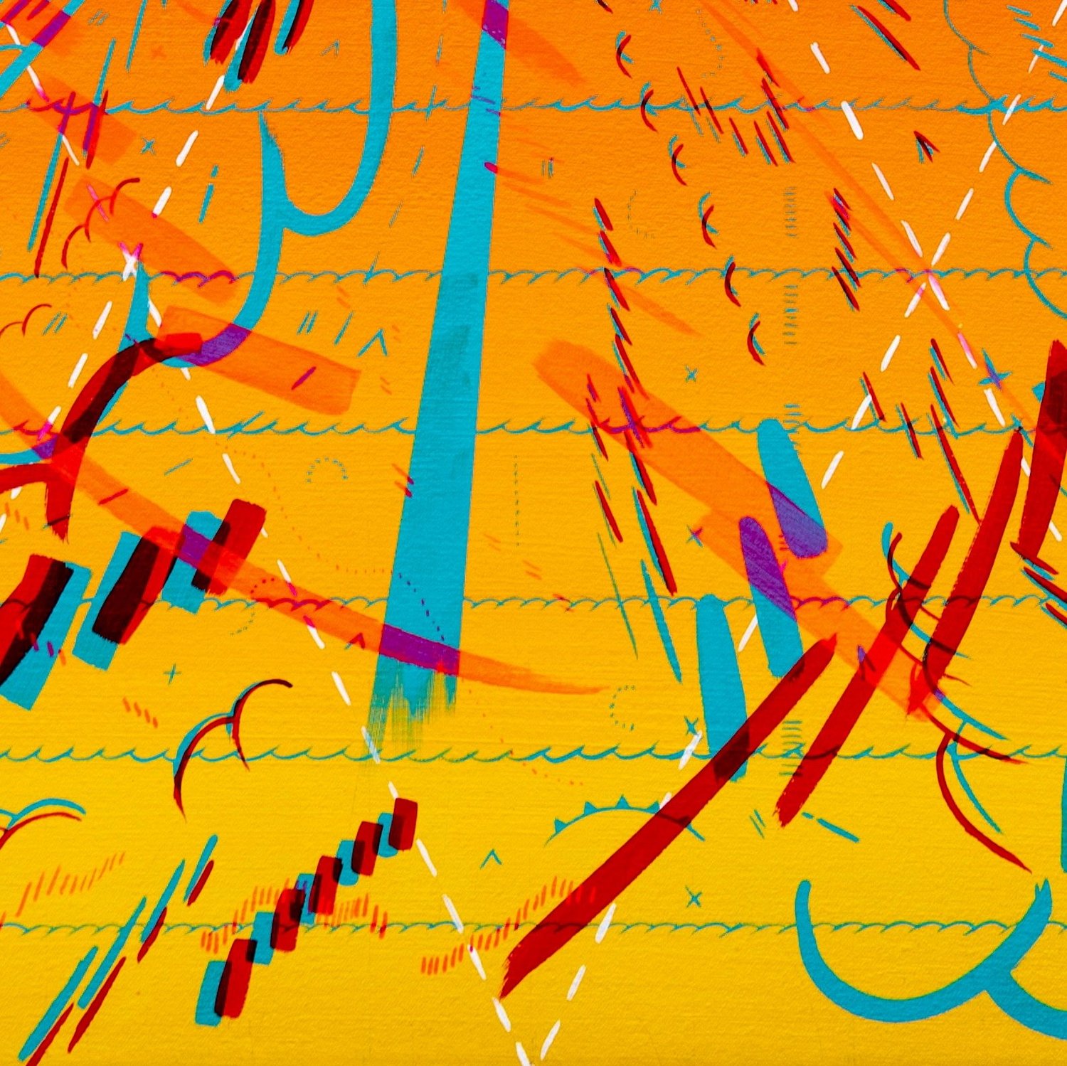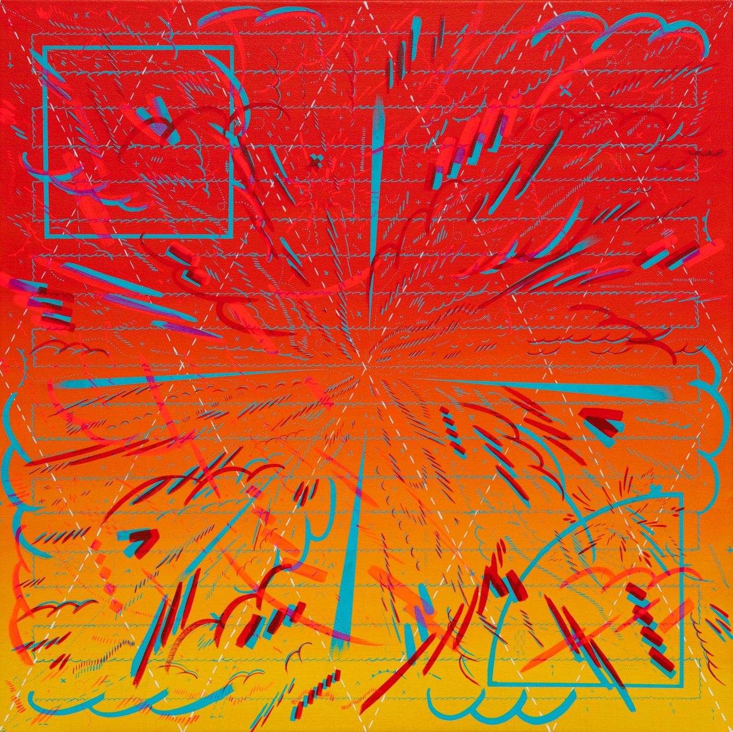 Trying some new things here: gradients, fluorescent colors, etc. Details below. Jason Gouliard Stars Wheeling Unread Above the Roofless Fortune-teller’s Booth: Number 28 2022 Acrylic on canvas 40” x 40”