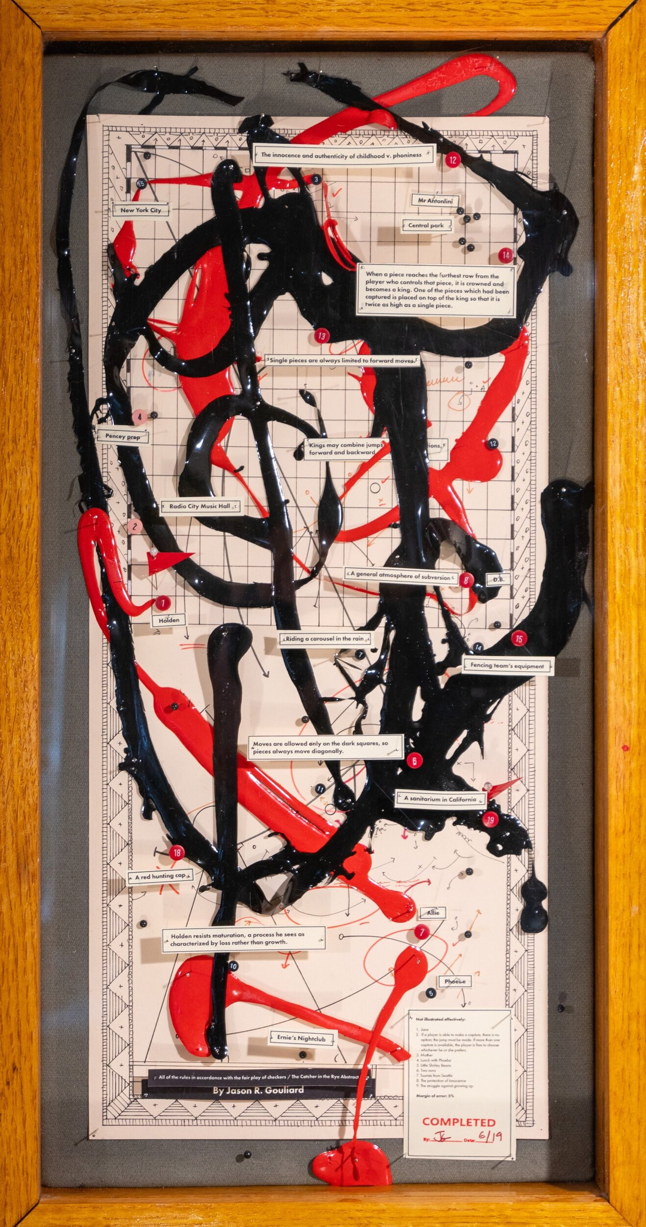 These pieces were primarily produced starting in 2000 during my time in art school and in 2018 in preparation for a group show in Seattle. These pieces allowed me to explore the intersection between abstraction and meaning. These diagrams can be characterized as abstract assemblages with recognizable reference points. I thought of them as earnest attempts at condensing rich, complex subject matter down to drips of paint through juxtaposing traditional abstract expressionist painting methods with cartography, proofreader's marks, and amateur roadside museum techniques of display, classification, and critique.
