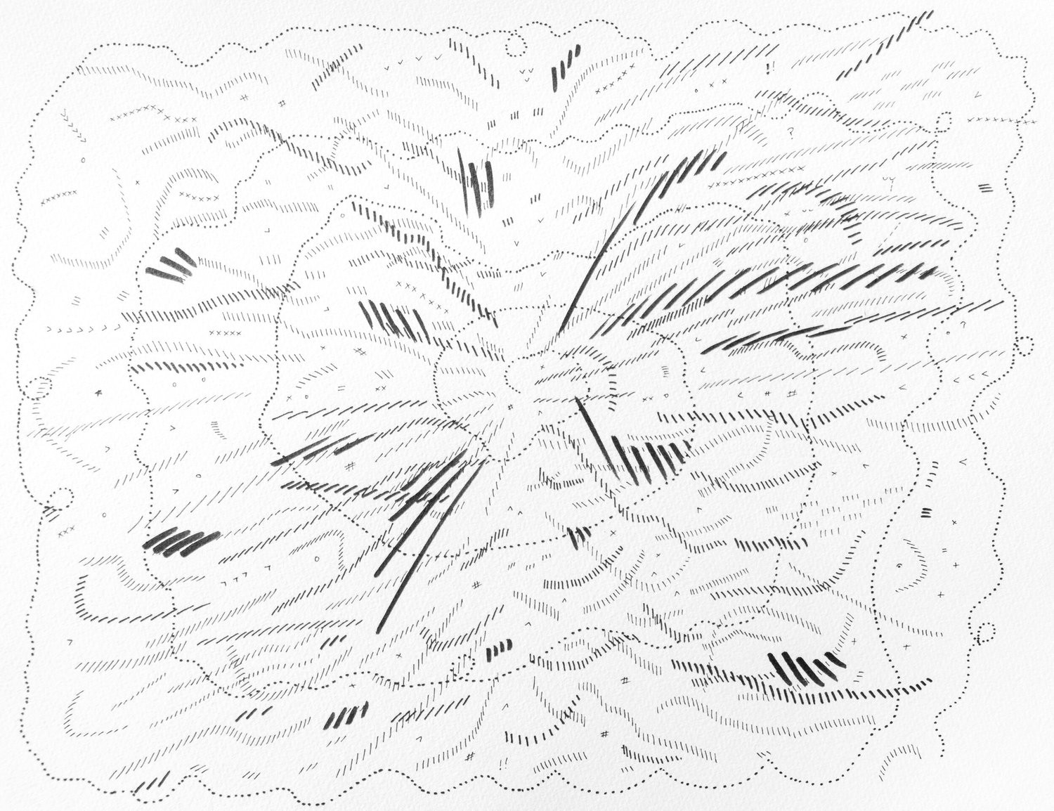 These pieces were produced between the years 2000 and 2020, though I still draw almost every day. Most of them served as layers to my series of diagrams. Some of them were part of a series of drawings sent out as holiday cards.